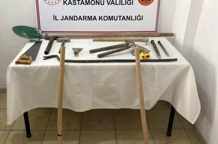 Kastamonu'nun Taşköprü ilçesinde, define arayan 5 kişi müsaadesiz hafriyat yaparken jandarma tarafından suçüstü yakalandı....